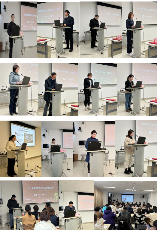 各党支部书记逐一进行述职,全体党员对党支部书记进行述职测评