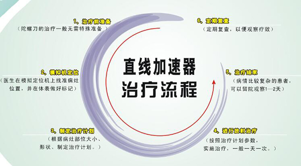 6 进行放射治疗——按照治疗计划参数,通过治疗操作系统进行一个疗程的治疗,一般一天治疗一次;
