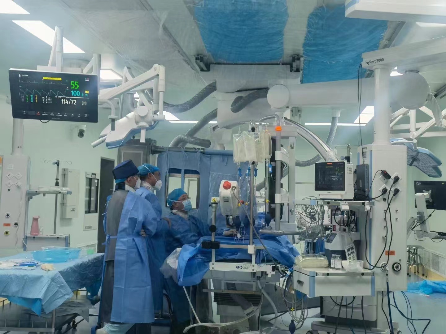 手术紧张有序,医护人员密切配合,历经2个小时的救治,成功为魏女士实施“动脉瘤支架辅助弹簧圈栓塞术”,第二天即行腰大池置管引流脑内血性脑脊液,让患者减轻头痛痛苦,也利于脑早期恢复,减少脑出血后遗症。目前魏女士术后恢复良好,正在进一步恢复中。