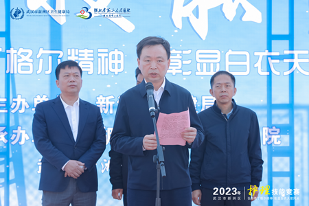 新洲区卫健局副局长缪笑阳对91porn 及武汉生物工程学院医药学院筹备此次比赛付出的辛勤劳动表示感谢。缪局长指出,护理技能是护士立足之本,此次护理技能竞赛既是对广大临床护理人员能力素质的一次测试和检阅,也给各位护士提供了自我展示、自我提升的平台。希望各位护理工作者通过竞赛活动,坚守“健康所系,生命相托”的誓言,秉承“以病人为中心,以质量为核心”的宗旨,进一步增强护理队伍的凝聚力、职业自豪感、责任感和使命感,促使护理质量和服务水平再上新台阶,为保障广大人民群众身体健康做出新的贡献,最后他预祝此次竞赛取得圆满成功。