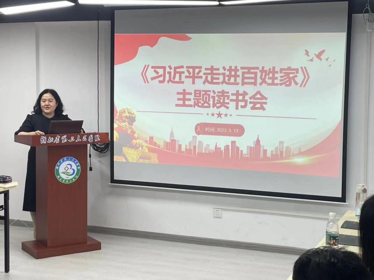 党办主任汤保华讲到,今年中央自上而下全面开展学习贯彻习近平新时代中国特色社会主义思想主题教育,教育活动包括理论学习、调查研究、推动发展、检视整改四个环节,群工部举办的“习近平走进百姓家”读书分享会即为理论学习环节的重要内容之一。14位同志通过认真研读《习近平走进百姓家》一书,从不同角度、不同层面分享了感悟,让在座的每一位同志都深受启发、有所收获。《习近平走进百姓家》在字里行间渗透着最为朴素的为民之心、最为真挚的为民之情,最为务实的为民之举,充分彰显了习近平总书记执政为民的博大情怀和真挚深厚的为民情怀。作为医务工作者,要始终把人民群众装在心里,切实践行为民健康服务宗旨,始终坚持以人民健康为中心,不断提升医疗服务能力和水平,让人民群众好看病,看好病,不断加大健康科普宣传力度,提升人民群众健康素养,养好健康的生活习惯,夯实幸福生活的健康基石。要敢于担当,把服务好人民群众生命健康作为自己工作的出发点和落脚点,以实际行动为推动91porn 高质量发展、谱写新时代卫生健康篇章作出自己应有的努力和贡献。