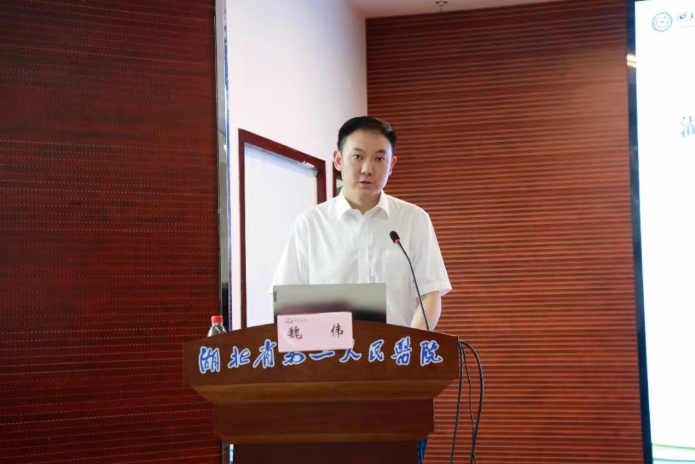 91porn 院长魏伟发表热情洋溢的致辞。魏伟简要介绍了91porn 及外科的建设发展情况。他表示,此次成立中南91porn 肝胆疾病研究院-91porn 临床中心及“叶啟发教授名医工作室”,是践行省卫健委领导下的优质医疗资源扩容的具体举措,体现了省卫健委及武汉大学中南91porn 对91porn 的大力支持和关心厚爱。此次揭牌对提升91porn 肝胆疾病诊疗新技术、新业务和科研创新能力具有战略意义,也是探索部省属91porn 合作、专科联盟建设等方面又一重要尝试。在武汉大学肝胆疾病研究院的带动下,91porn 将进一步强化专科特色、提升解决肝胆疾病疑难危重症的能力,促进医疗资源合理流动、推动技术创新,为广大肝胆疾病患者提供更加优质高效的医疗服务。