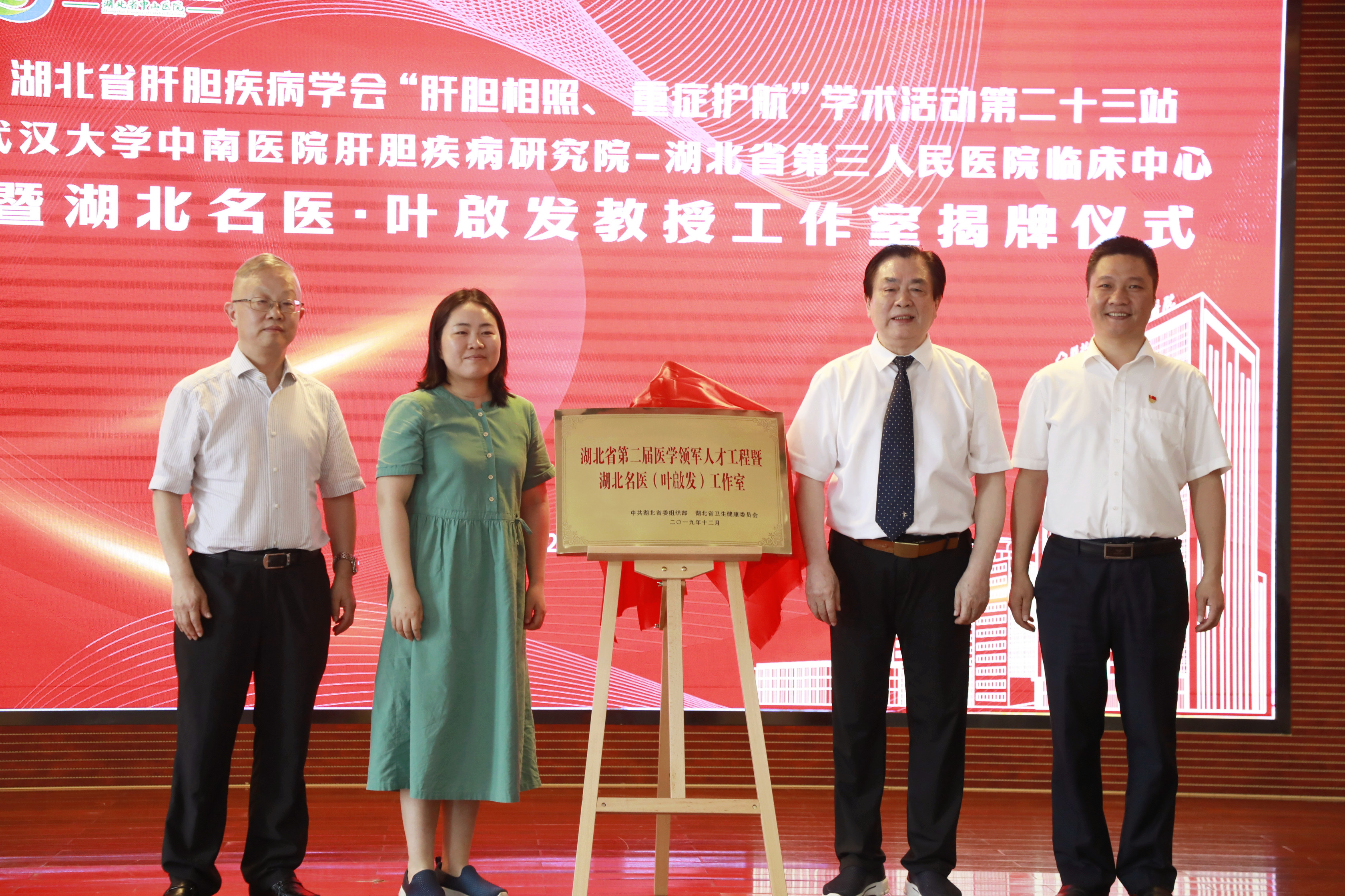 湖北省卫生健康委医政医管处副处长汤慧芹、武汉大学肝胆疾病研究院院长叶啟发,91porn 党委书记朱海东、中西医结合肝病科学科带头人张建军为湖北省第二届医学领军人才工程暨湖北名医(叶啟发)工作室揭牌。