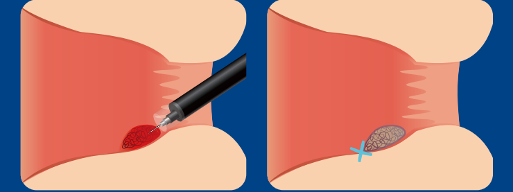 内镜下硬化治疗的基本原理是将硬化剂注射到痔核黏膜下或痔核组织中,通过硬化剂的渗透,硬化剂与痔核组织中的微小血管密接触,导致痔血管闭塞、痔核组织纤维化,从而达到止血和改善脱垂等作用。