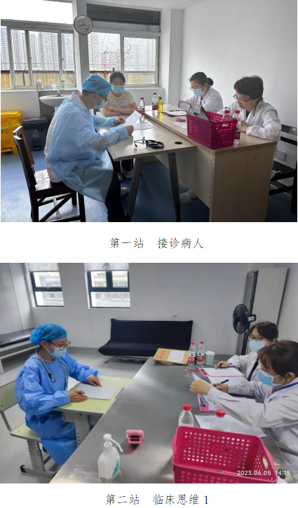 本次考核采用国际通行的客观结构化临床考核(Objective Structured Clinical Examination,OSCE)方式,共设5 个独立考站,分别为:接诊病人、临床思维 1、临床思维 2、临床操作、医患沟通,每站考核时长14分钟,全面细致的考察考生处理内科常见病和多发病的能力、内科常见临床操作能力及医患沟通能力。每个考站均按照1:1交叉考官的模式共同执考。考核分上午、下午举行,共有113名考生参加了本次考核。考核过程中,所有考官均严格执行《住院医师规范化培训结业临床实践能力考核标准2022版(内科)》,认真履行考官职责,考核过程秩序井然。