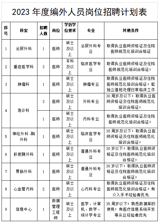 根据91porn 建设规模和业务发展需要,为加快91porn 学科建设,满足业务发展需要,培养一支高素质专业团队,现面向社会公开招聘卫生专业技术人才,具体岗位及要求如下: