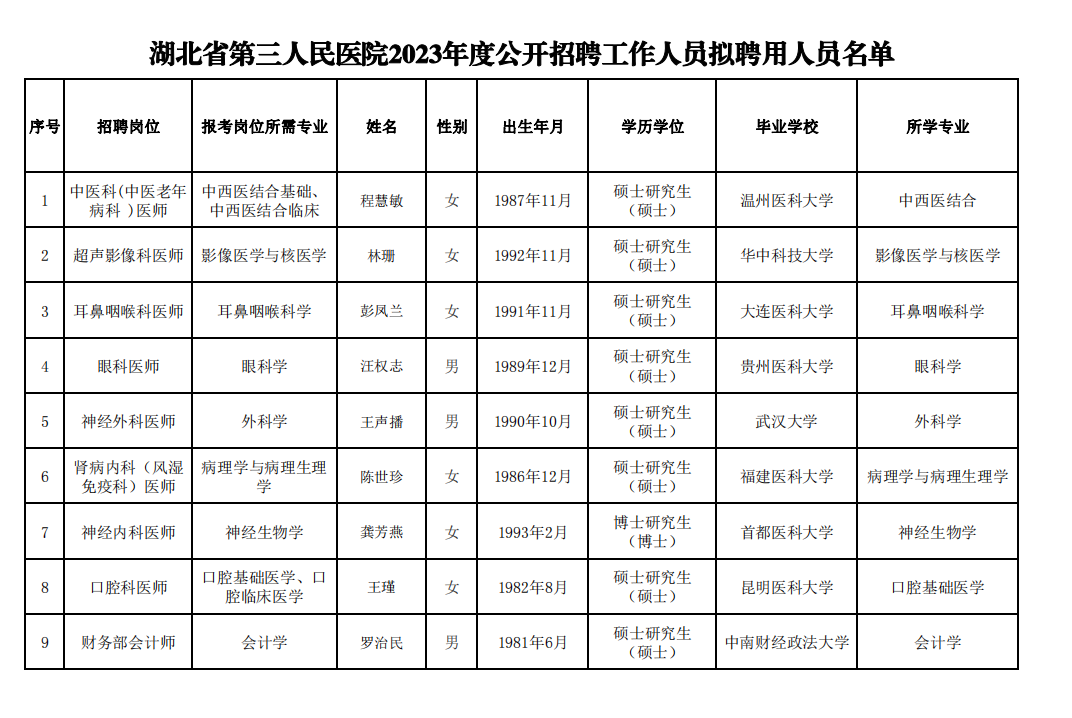 附件:91porn 2023年度公开招聘工作人员拟聘用人员名单