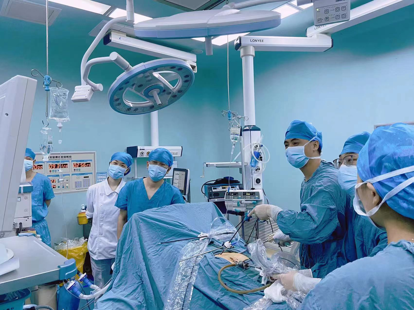 但术前查患者心脏彩超射血分数EF(%)只有30%,左室壁运动弥漫性减弱,左心扩大并左室收缩功能减低,说明患者心脏射血功能严重受损,随时可能出现心力衰竭,麻醉风险极大。针对这种情况,叶少军和周大为并没有放弃,他们邀请中南91porn 麻醉科主任宋学敏来院会诊并主持夏大爷的麻醉,充分保障患者的术中安全。手术由周大为主任亲自操刀,术中发现患者的肝囊肿内因前两次穿刺治疗充满了血性液体和坏死组织,若不彻底清除则后期会出现肝脓肿等严重并发症,周大为主任为其实施了腹腔镜肝囊肿开窗引流术,彻底清除肝囊肿囊腔内的坏死组织,保证了术后的顺利恢复。整个手术过程中患者生命体征平稳,术后患者恢复良好,目前已经康复出院。(文:罗晓明)