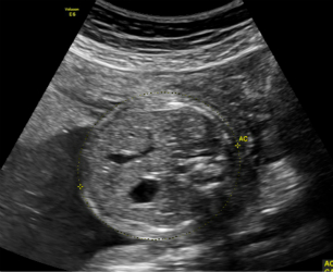 2.妊娠18周~24周超声检查:主要进行胎儿结构畸形的系统筛查。此时期胎儿各器官已发育成熟,系统产前超声检查可记录胎儿各器官结构包括头颅、面部、胸腹腔、心脏、肝脏、双肾、肢体及胎盘等结构,可发现大多数胎儿结构畸形。此阶段是观察胎儿结构和诊断胎儿畸形黄金时段,我们建议所有孕妇在此阶段务必接受一次超声检查。