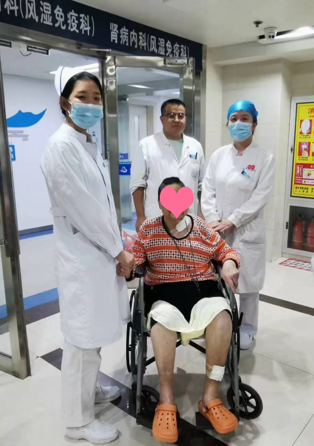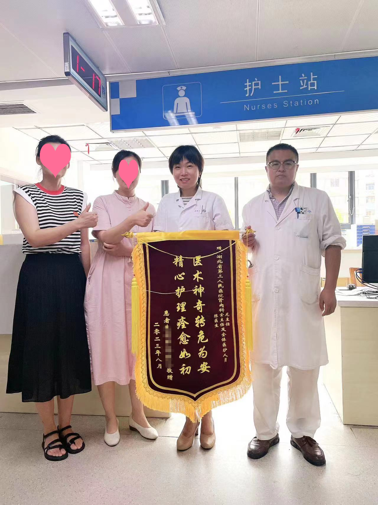 “医术神奇转危为安,精心护理痊愈如初”出院前,朱婆婆及家属将特地定制的锦旗送到肾病内科(风湿免疫科),向该科主任龙利及全体医护表示感谢。“这次真是捡回了一条命,感谢省第三人民91porn ,感谢龙主任!”