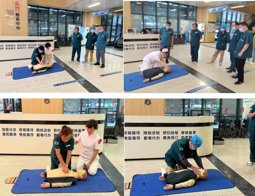 为进一步提高久霞服务中心护理人员急救水平,快速反应能力与组织协调突发事件的应急能力,助力91porn 高质量发展下确保医疗安全管理。2023年9月26日下午,91porn (湖北省中山91porn )久霞服务中心在门诊大厅举行了“患者突发心脏骤停应急预案演练”。