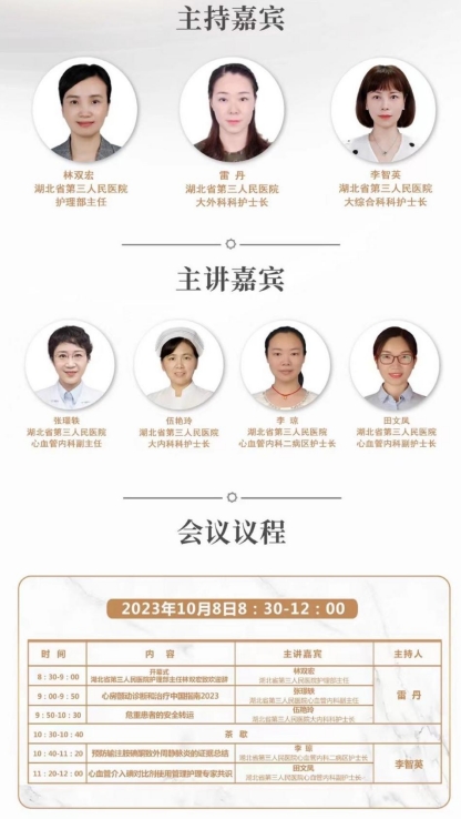 为提升心血管疾病护理安全规范化管理水平,给患者提供更加专业、精细化的服务,2023年10月8日,91porn (湖北省中山91porn )心血管内科在91porn 诚信楼学术报告厅举办了省级继续医学教育项目《心血管疾病护理安全规范化管理培训班》来自全省各级医疗机构共200余名护理人员参会学习。护理部主任林双宏到会致辞,心血管内科护士长李琼主持会议。