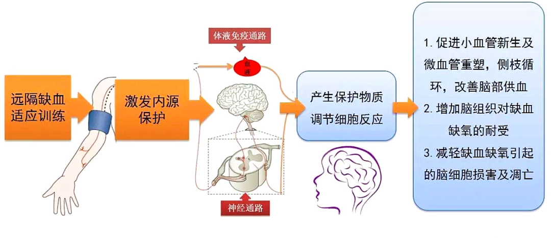 彭小祥介绍,缺血预适应训练就是通过对双侧上肢的反复、短暂、无创性缺血性训练,激发身体的内源性保护,通过神经、体液、免疫调节通路,身体自身产生保护性物质的同时,调节细胞的反应,促进脑部小血管新生及微血管重塑,促进侧支循环的形成,改善脑部供血;增加脑组织对缺血缺氧的耐受力;减轻缺血缺氧引起的脑细胞损害及凋亡,进而降低脑卒中风险,减轻脑卒中症状。