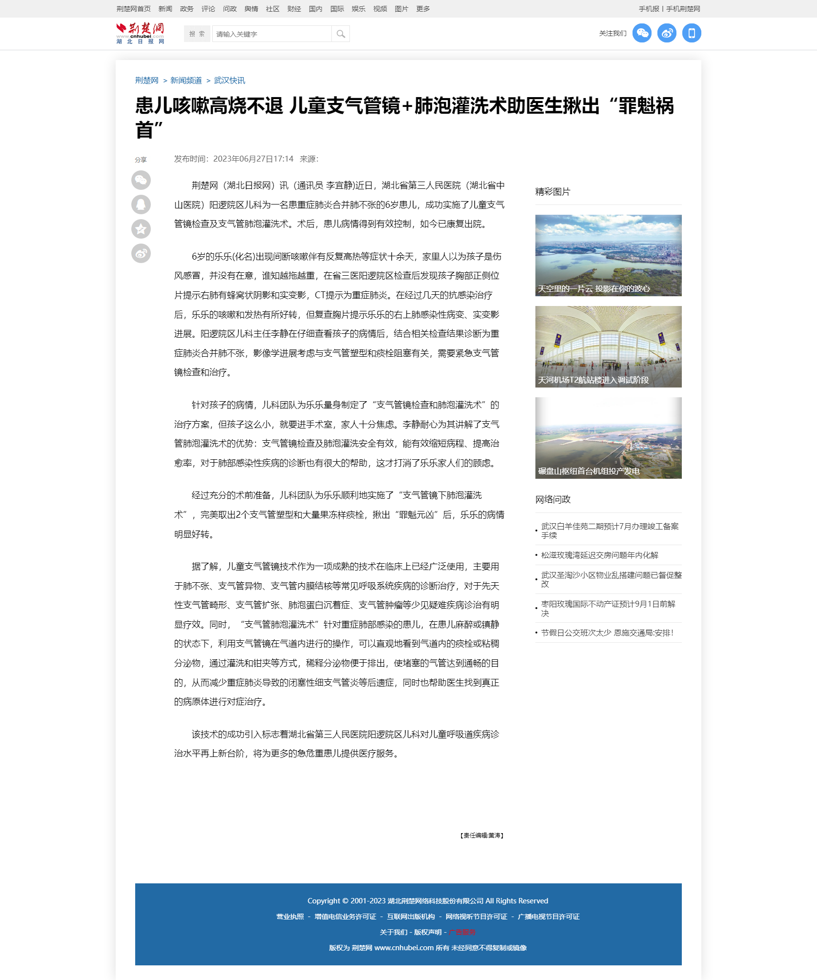 患儿咳嗽高烧不退 儿童支气管镜+肺泡灌洗术助医生揪出“罪魁祸首” 发布时间:2023-10-17 来源:儿科 上一篇:医者仁术得民心 患者感谢赠锦旗 下一篇:穿越气道“迷宫”——麻醉医生让“困难气道”不再困难