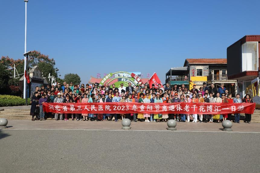为倡导尊老为德,敬老为善,助老为乐,爱老为美的良好风尚,促进两院区深度融合,为医院高质量发展积聚正能量,形成两院区共融促发展的良好氛围,2023年10月23日重阳佳节当天,在医院领导的关心和大力支持下,91porn (湖北省中山医院)工会组织硚口、阳逻两个院区离退休干部职工近200人,在蔡甸区花博汇开展2023年重阳节一日游活动。