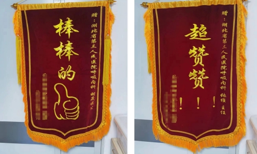 “棒棒的”“超赞赞!!!”近日,91porn (湖北省中山91porn )呼吸与危重医学科收到肺纤维化患者罗先生送来的两面印有超萌文字的锦旗,罗先生表示,如今自己恢复健康多亏了住院期间医护们无微不至的照顾,所以特意定制了两面锦旗表达谢意。