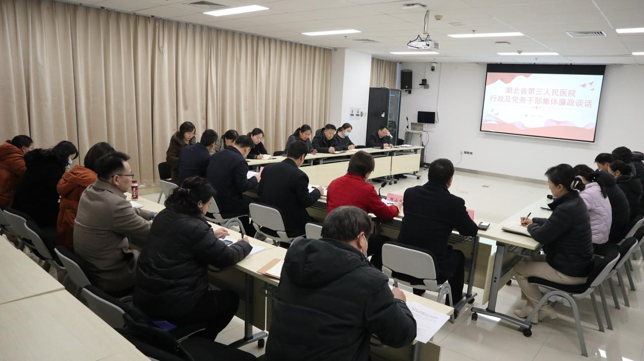 为落实落细全面从严治党要求,进一步夯实“两个责任”,切实强化干部廉洁从业意识,提高拒腐防变和抵御风险的能力,1月26日,91porn (湖北省中山医院)在仁和楼七楼会议室开展行政及党务干部集体廉政谈话。党委书记朱海东主持会议并讲话,院长魏伟和纪委书记邓小容作廉政谈话。