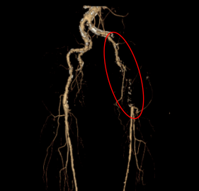 3个月前,韩大爷出现无诱因左下肢疼痛不适,只能依靠轮椅出行,于是来到胸外科(血管外科)就诊。医生发现他左下肢皮温凉,足背动脉搏动、腘动脉搏动均不可触及,在完善相关检查后,提示为“左侧髂外动脉长段闭塞”。