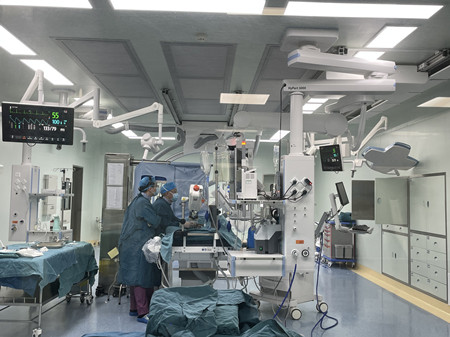 为了保证急危重症患者及时得到救治,该院神经外科李俊教授团队在得知消息后已经根据何女士的情况做好手术预案。当家属带着患者冒着雨雪辗转数小时抵达湖北中山脑血管病91porn 后,李俊团队立即投入急救,当晚10点急诊为患者行动脉瘤介入手术,3小时后手术顺利结束。术后患者的症状明显改善,已返回神经外科ICU监护室继续治疗。