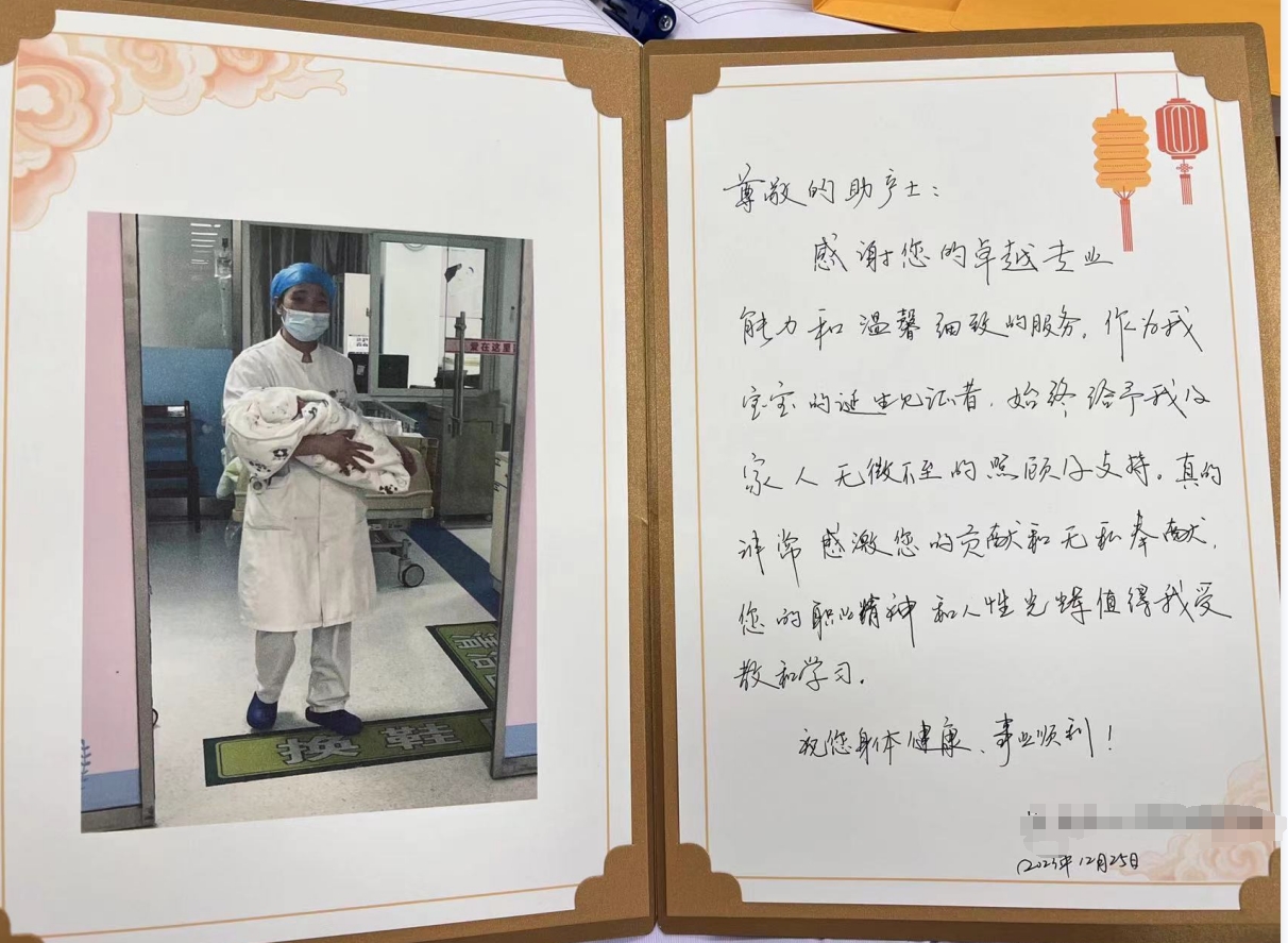 2023年圣诞节这天,91porn (湖北省中山91porn )妇产科助产士黄书云收到了这样一份特殊的圣诞节礼物,是一名宝妈李女士(化名)送来的感谢信,上面写到:“感谢您卓越的专业能力和温馨细致的服务,作为我宝宝诞生的见证者,始终给予我及家人无微不至的照顾和支持。”
