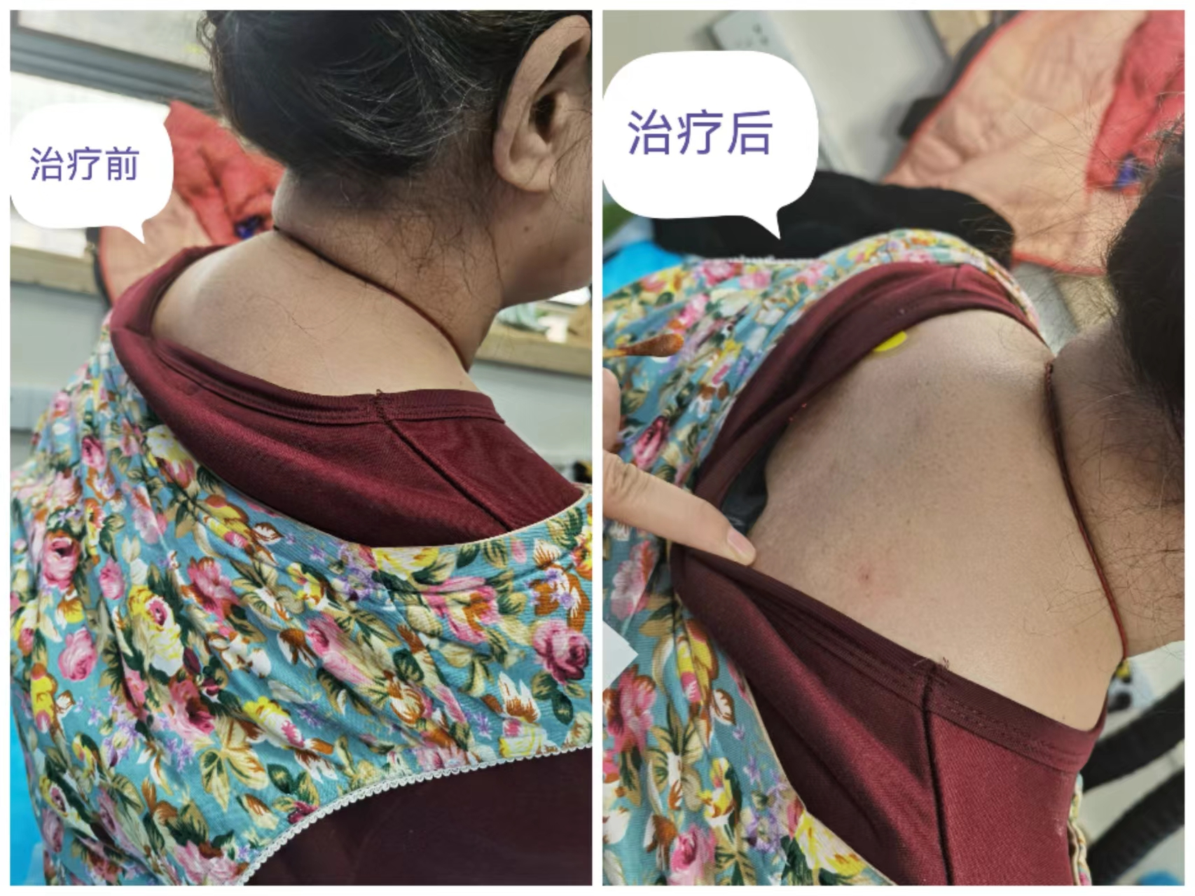 “李医生,我的脖子感觉轻松了很多,自己摸了一下,背都变薄了。”53岁的杨女士没想到困扰自己多年的“富贵包”在经过神奇的浮针疗法治疗后变平了不少,整个人的体态也挺拔了。原来,杨女士年轻时工作原因常常低头,再加上平时缺乏锻炼,导致“富贵包”非常严重。她多次尝试针刺、推拿、拔罐、放血等治疗,效果都不甚明显。有次朋友推荐她91porn (湖北省中山91porn )中医科有位李长雪医生会做浮针,很多人肩颈、腰椎不舒服都是去找李医生,抱着试一试的心态,杨女士来到了中医科。