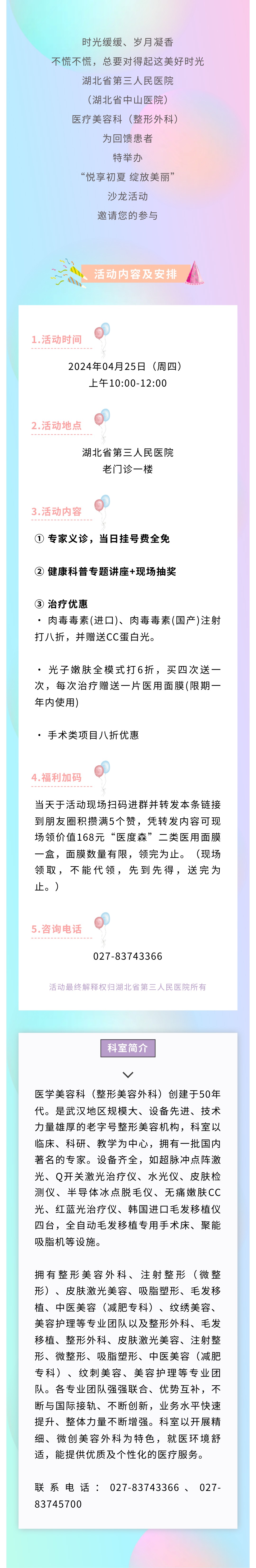 悦享初夏 绽放美丽——医疗美容科(整形外科)科普沙龙活动来袭 发布时间:2024-04-24 来源:医疗美容科(整形外科) 上一篇:一份特殊的成绩单 下一篇:91porn 志愿服务队开展老年人音乐疗法康复活动