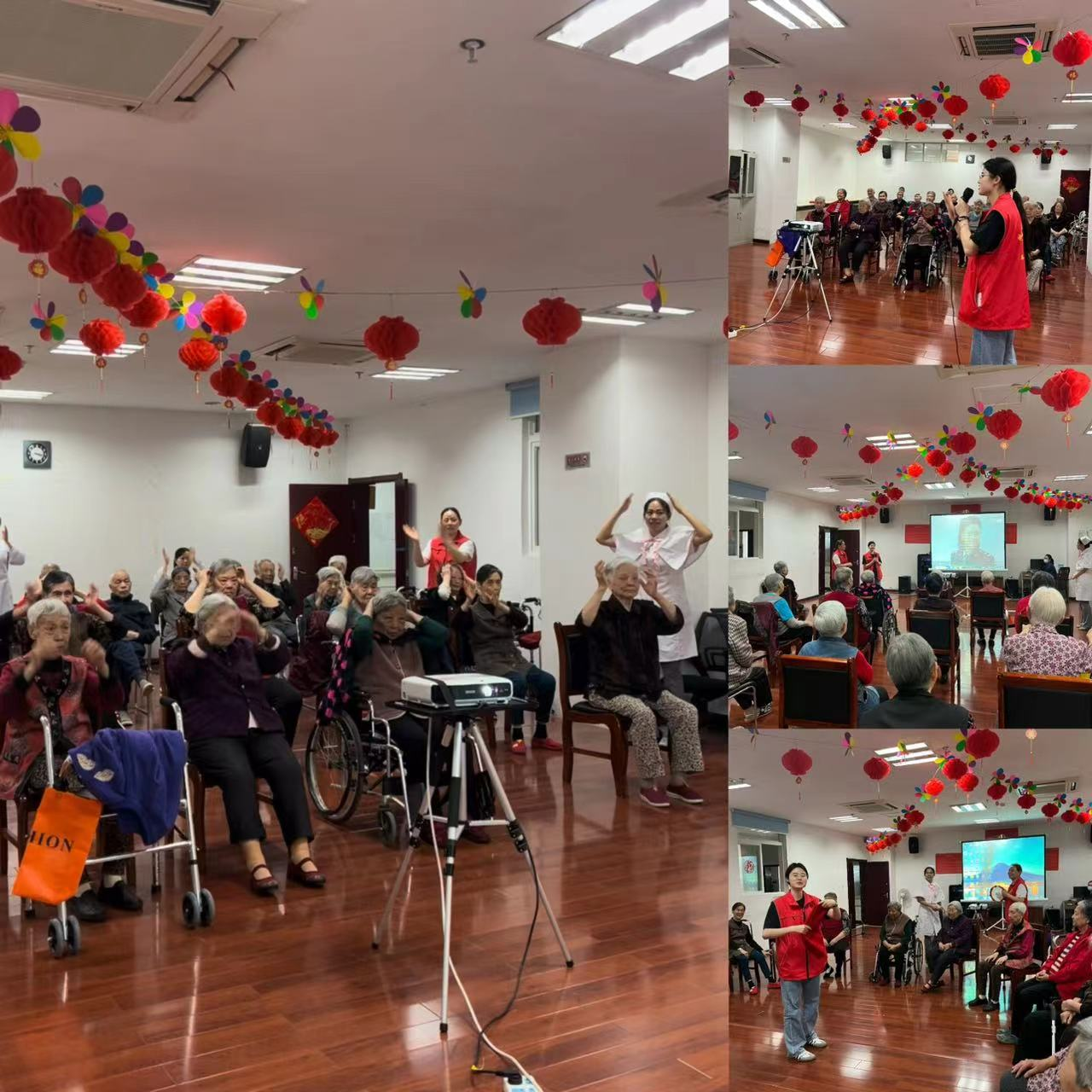 康复医学中心技师邹睿介绍了冥想有提高情绪管理能力、缓解消极情绪、改善睡眠问题的好处。在舒缓的音乐声中,带领老人们一起冥想。随后又播放了老年人耳熟能详的歌曲,在场的老人们都情不自禁的跟着音乐一起哼唱起来。最后志愿者带领老人们进行脑身心巧手操锻炼。