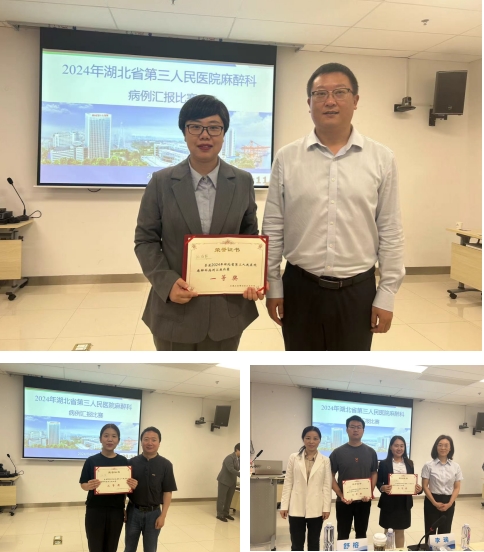 两院区共计17名麻醉医生参加比赛,比赛现场,各位选手沉着冷静、逻辑清晰、表达流畅,对麻醉病例进行了全面、详细的分享,充分展示了选手们扎实的专业功底和昂扬的精神风貌。经过激烈角逐,硚口院区麻醉科孙海静医生荣获本次病例汇报比赛一等奖;硚口院区麻醉科白雪医生荣获二等奖;阳逻院区麻醉科万泽辉医生与硚口院区麻醉科于迪医生荣获三等奖。