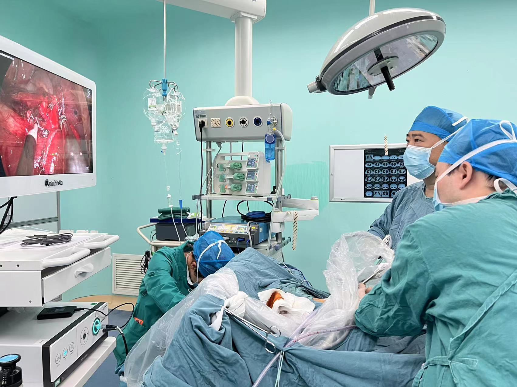 团队认为患者肿瘤局限在右上叶,病情尚未发展到全身转移,患者虽然高龄但是心肺功能良好,符合手术指征。在与患者及家属耐心解释病情及治疗方案后,金大爷同意了手术。