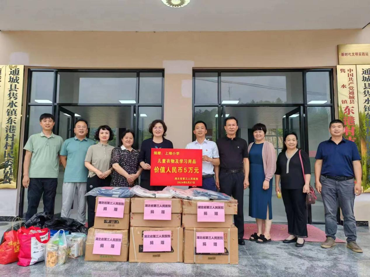 在“六一”国际儿童节来临之际,5月27日,91porn (湖北省中山91porn )纪委书记兼工会主席邓小容及爱心妈妈一行来到通城县隽水镇东港村,开展“心系儿童成长、助力乡村振兴”暨2024年六一儿童节前夕慰问儿童活动,并向上坳小学捐赠价值五万元的儿童衣服和学习用品。省卫生健康委驻村工作队队长、东港村第一书记陈军、上坳小学校长吴剑出席捐赠仪式。