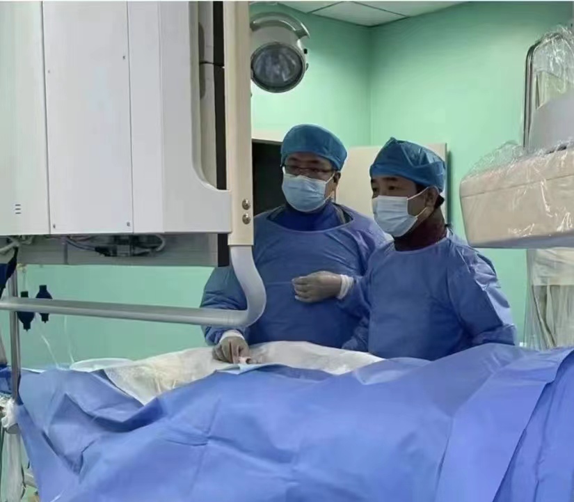 与王师傅住在同一病房的张师傅,也是来自脑卒中专科联盟单位嘉鱼县中医91porn 。他是在检查时发现左侧颈内动脉C1段有一个体积约为0.5*5.1mm夹层动脉瘤。由于病灶位置前后的血管迂曲,被转入91porn 神经内科。手术当天,万跃带领其团队为患者进行了颈内动脉瘤夹层动脉支架辅助弹簧圈栓塞术,经过两天的观察,患者恢复良好,可以出院。