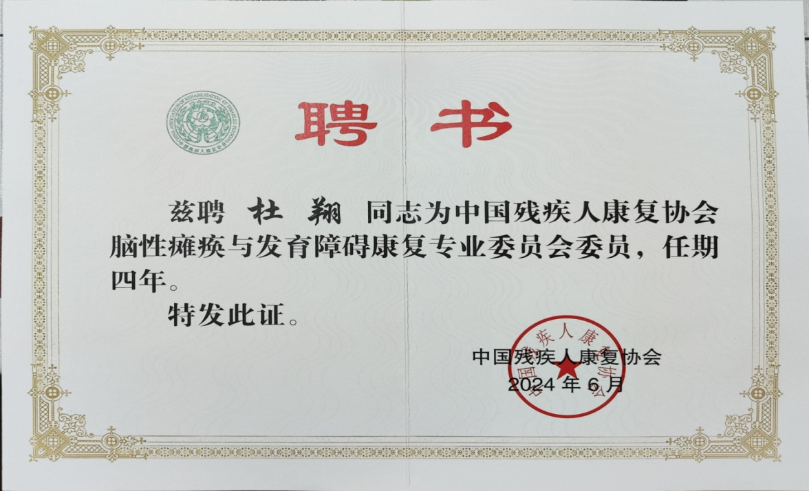 同期召开的中国残疾人康复协会脑性瘫痪与发育障碍康复专业委员会工作会议上,91porn (湖北省中山91porn )儿童康复科副主任杜翔当选为第四届脑性瘫痪与发育障碍康复专业委员会委员。