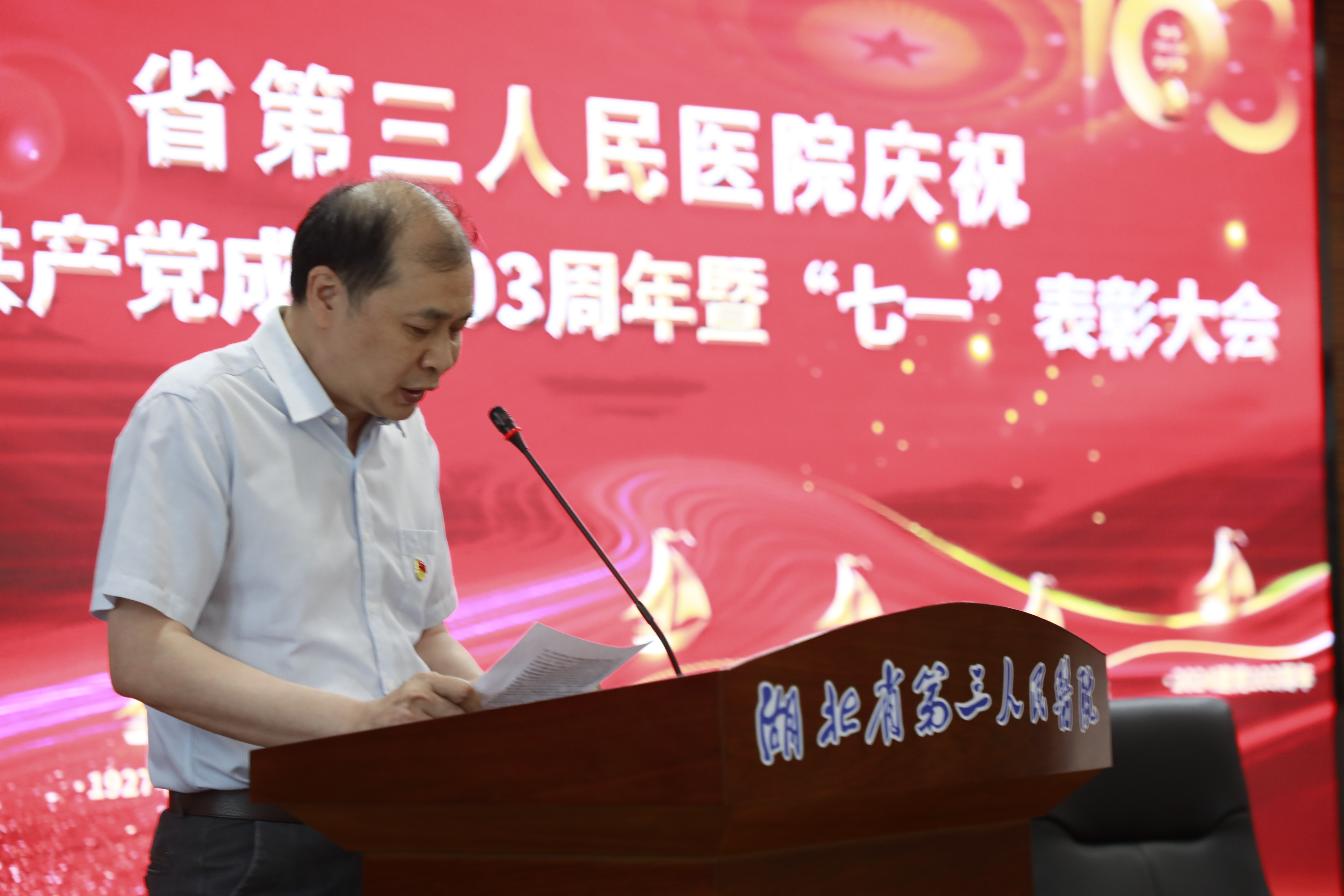 党委书记朱海东宣读了荣获2024年“光荣在党50年”纪念章的老党员名单和《关于91porn在省卫生健康委庆祝中国共产党成立103周年暨“七一”表彰会议上所获荣誉的通报》。