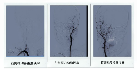来到省第三人民91porn 神经内科后,湖北中山脑血管病91porn 执行副院长、神经内科主任万跃详细查看了杨爹爹的病情。当时,患者一直有头晕症状,反应较前明显迟钝,左侧肢体肌力上肢3级,下肢2级,无法独自站立,需要轮椅出行。神经功能NIHSS评分为9分,日常生活能力mRS评分为4分。DSA检查发现,患者的双侧颈内动脉起始部闭塞,右侧椎动脉起始部重度狭窄。鉴于血管病变较为复杂,经过术前讨论,建议分次处理患者狭窄和闭塞的血管。考虑到患者的前循环梗死面积较大,尚需一定时间修复,因此建议延迟1-2个月后行右侧颈内动脉的开通手术,这样更加安全。而右侧椎动脉开口重度狭窄,且未与基底动脉吻合,一旦闭塞可能导致小脑梗死。