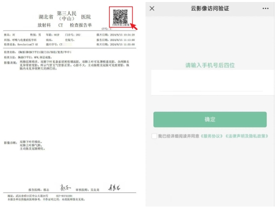 扫描个人纸质报告单上的二维码获取数字化影像结果