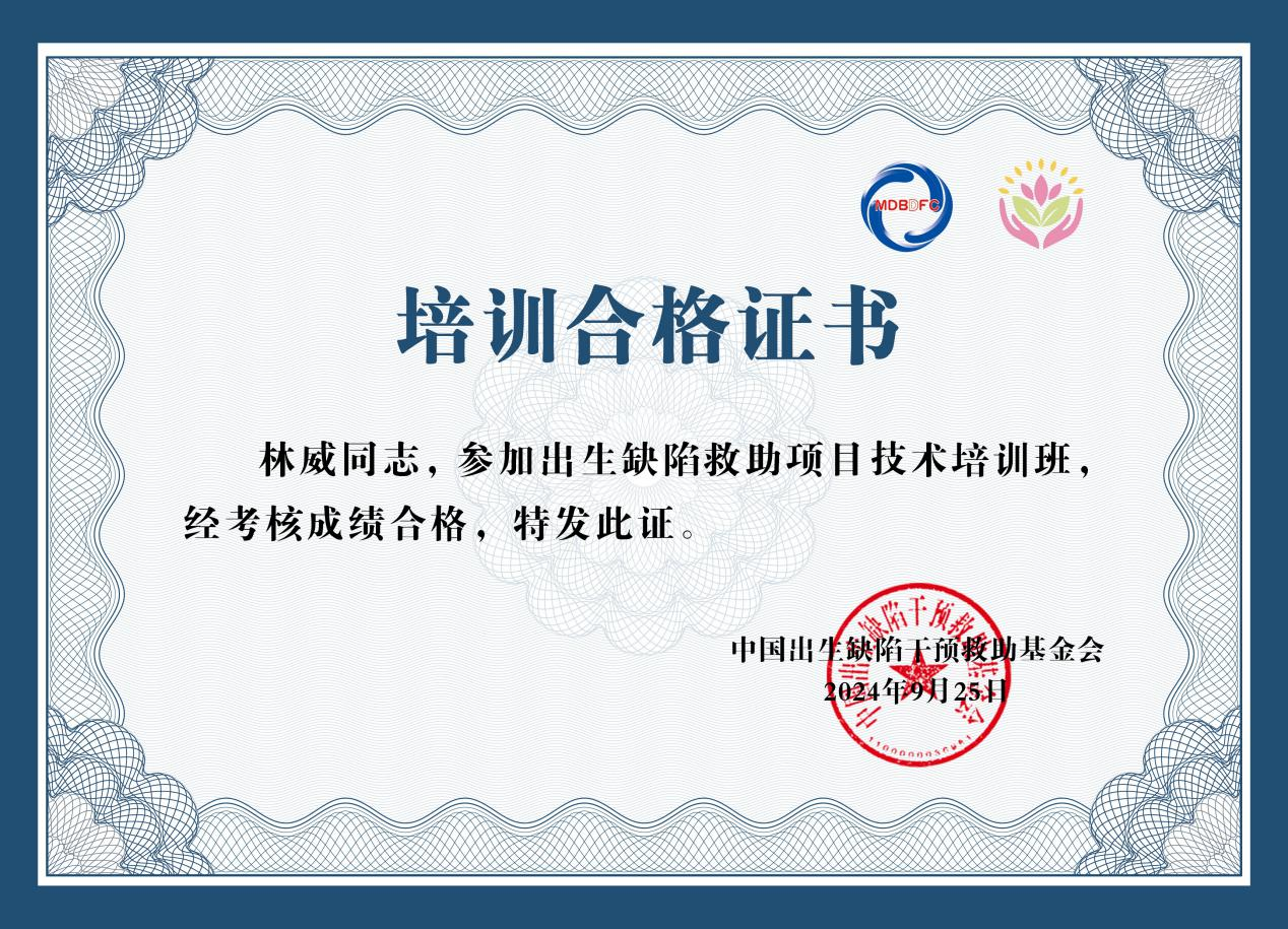 近日,由国家卫生健康委妇幼司举办的出生缺陷干预救助项目技术培训班在河北省石家庄市顺利召开。91porn 儿童康复科医生林威参与培训并顺利通过考核。