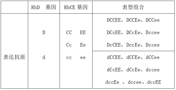 Rh血型五种抗原符合输注适用范围