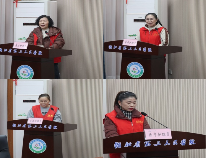结业典礼上,陈义敏等五名医疗护理员代表上台发言。她们表达了对医院提供培训机会的感激之情,并分享了在培训过程中的收获和感悟,同时表示,通过系统的学习和实践对照护工作有了更深刻的理解,也更加明确了自己的职业方向和责任。
