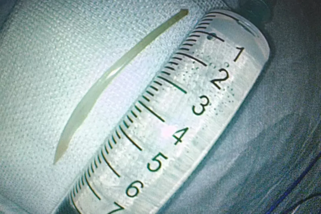 患者及家属看到这根长达8厘米的鱼刺,不禁感到后怕和感慨,幸亏及时来医院就诊,有机会胃镜下取出鱼刺,避免了一场外科手术。经过消化内科团队的精心医治,邓阿姨第二天腹痛明显减轻,第三天腹痛完全缓解,顺利出院。