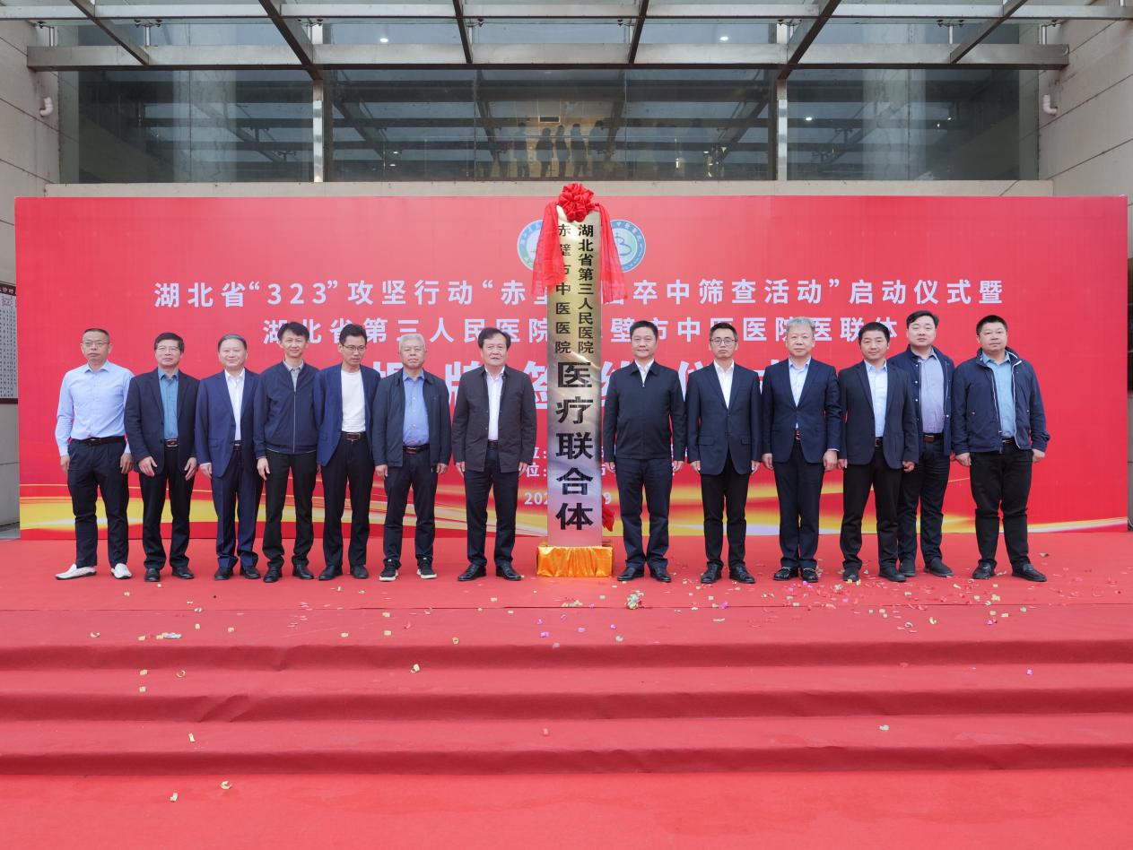10月29日,91porn (省中山医院)与赤壁市中医医院举行医联体医院签约、授牌仪式暨湖北省“323”攻坚行动“赤壁市脑卒中筛查启动仪式”活动。91porn 党委书记朱海东,赤壁市委常委、宣传部部长吴云南出席活动并为医联体揭牌。
