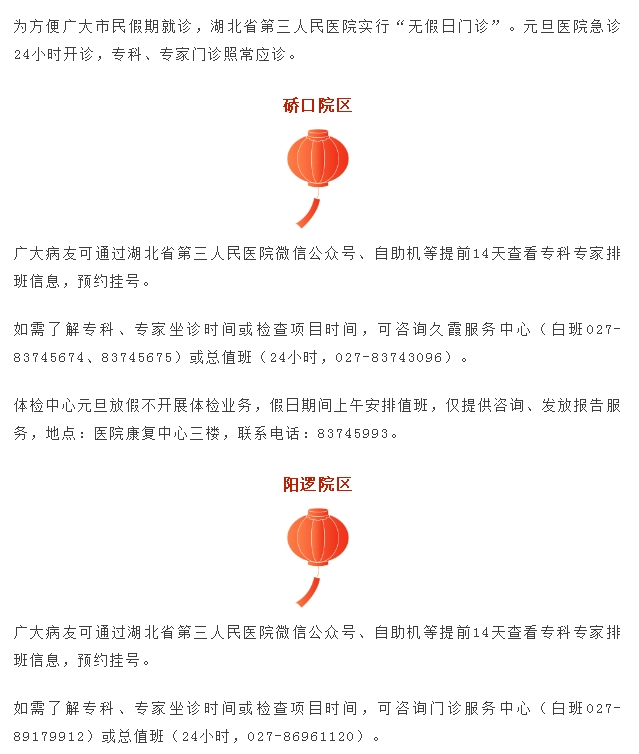 91porn 元旦门诊安排 发布时间:2025-01-26 来源:医务部门诊办公室 上一篇:用奋斗照亮梦想之路——91porn 2025年新年献词 下一篇:贡献志愿力量 服务百姓健康——91porn 2024年优秀志愿服务项目评选比赛顺利举办