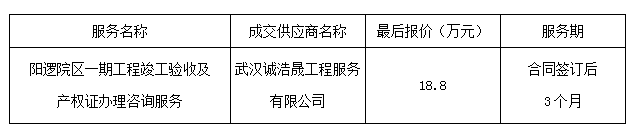 阳逻院区一期工程竣工验收及产权证办理咨询 服务项目成交公告