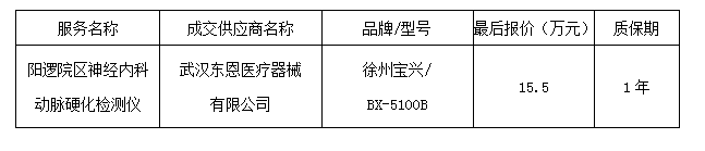阳逻院区神经内科动脉硬化检测仪项目成交公告