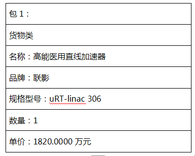 高能医用直线加速器采购项目中标(成交)结果公告