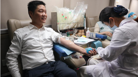 当天上午,党委书记朱海东带头挽起衣袖无偿献血,今年已经是他第十四次献血,累计献血量达5400毫升。他表示,组织医护人员献血不仅是91porn 履行社会责任的具体体现,更是对“敬佑生命、救死扶伤、甘于奉献、大爱无疆”职业精神的生动诠释。同时,91porn 也呼吁更多社会公众加入到无偿献血的队伍中来,用爱心接力,共同筑起守护生命的坚固防线。