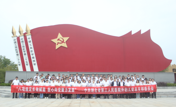 为进一步传承红色基因,增强党员家国情怀,2025年5月10日,外妇儿党总支近100名党员奔赴革命老区麻城乘马岗镇开展“八项规定长效赋能 医心向党聚力发展”红色主题教育践学活动。纪委书记陈明、党委办公室主任方洁、纪委办公室(监察审计部)主任汤保华、党总支书记雷丹、外妇儿党总支各党支部书记等参加活动。