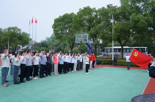 在庄严的党旗下,全体党员重温入党誓词