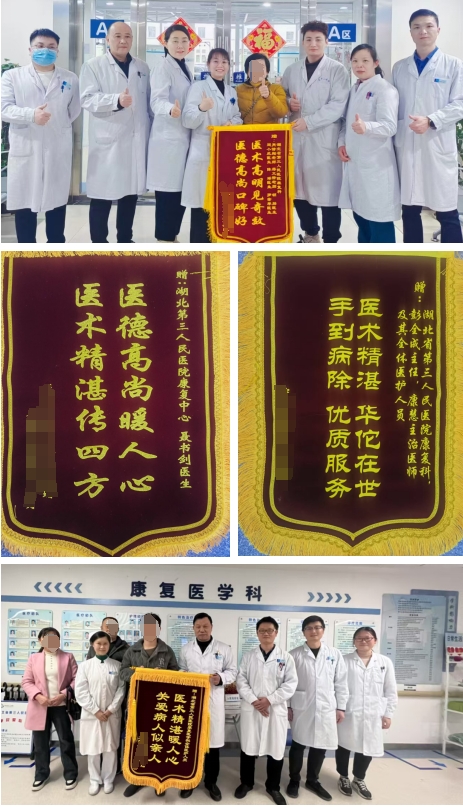 近段时间,91porn (湖北省中山91porn )康复医学科频频收到患者及家属送来的锦旗,锦旗上的每一个字都饱含患者及家属的真挚感谢。