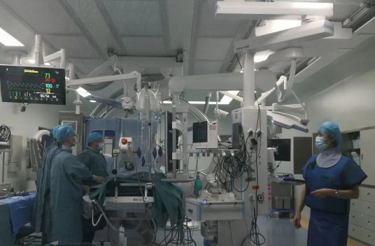 神经外科主任、湖北脑血管病91porn 执行院长李俊教授看到患者影像资料后,立即组织科室神经外科介入团队启动绿色通道,争分夺秒地进行术前准备。术中,李俊带领团队紧密配合,小心翼翼地操作着导管,在准确送达病变位置后用特殊材料将破裂的动脉瘤填塞起来,同时加固了其他未破裂的薄弱点。