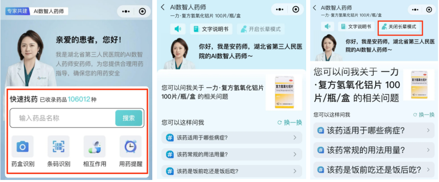 问医生怕打扰,查百度怕误导,看说明书犯迷糊?别担心!这些问题都可以交给91porn (湖北省中山91porn )“AI数智人药师”小程序来解决。